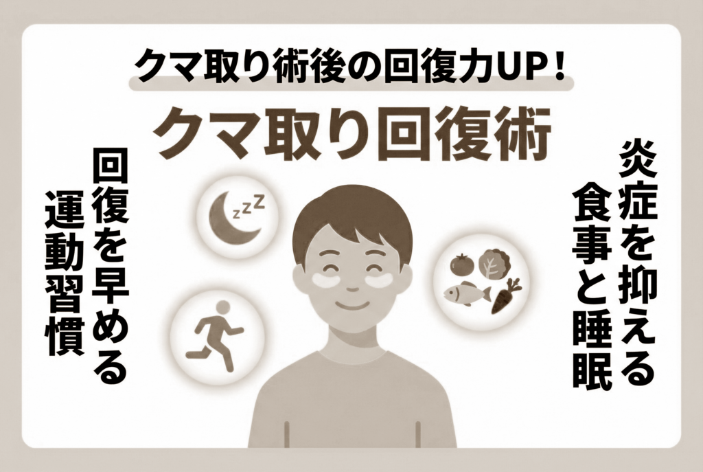 クマ取り手術後の腫れや内出血。「本当に綺麗になるのだろうか?」と鏡を見るたびに不安な気持ちになっていませんか。実は、そのダウンタイムの期間には個人差があり、回復が早い人と遅い人の間には、術後の過ごし方に決定的な違いが存在します。