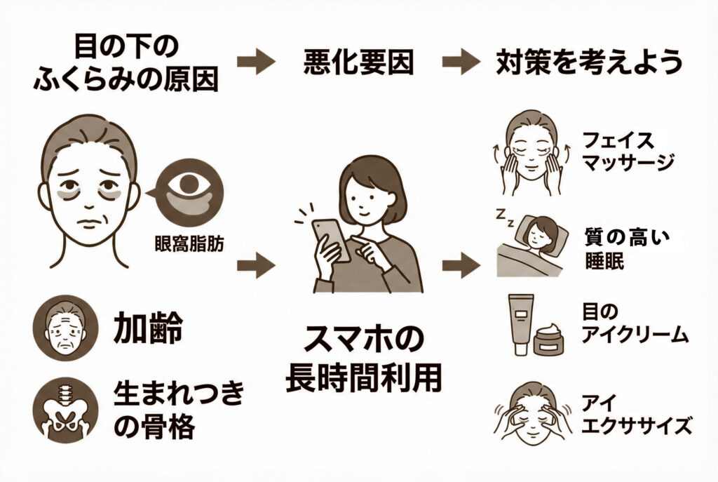 今回は、目の下のふくらみの原因から治療法、そしてアフターケアまでを詳しく解説しました。
