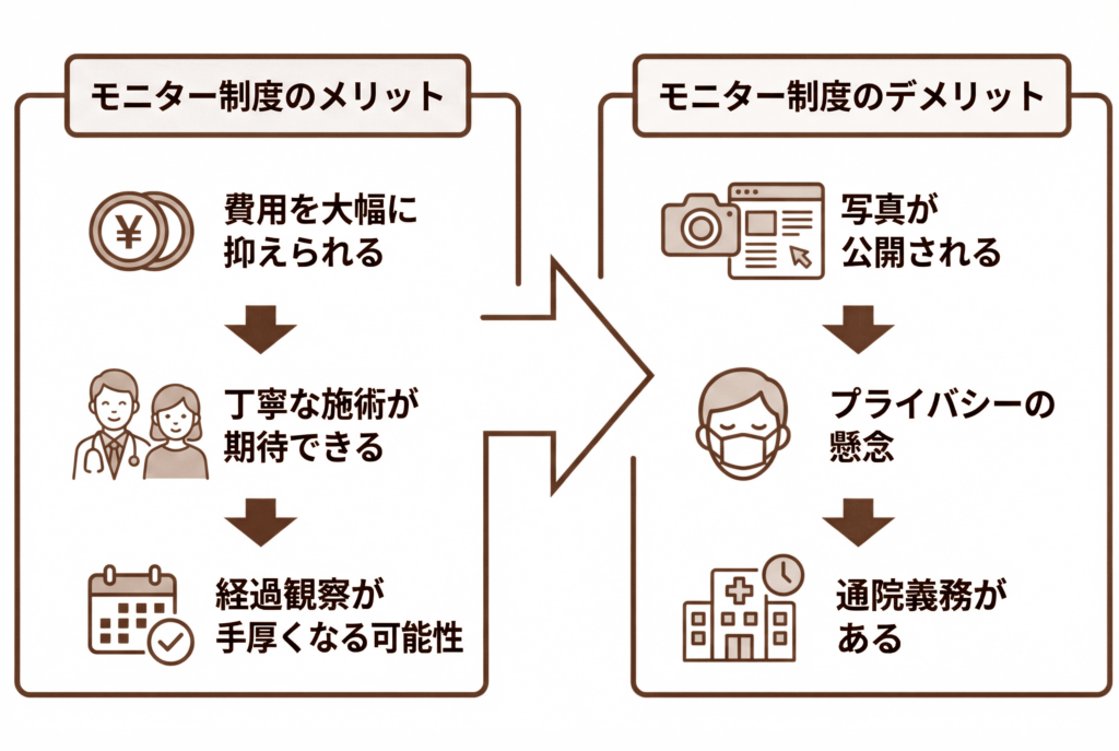 そこで選択肢として挙がるのが「モニター制度」です。費用を抑えて施術を受けられる可能性がある一方で、「なぜ安いのか」「特別な条件があるのではないか」といった疑問や不安が伴います。